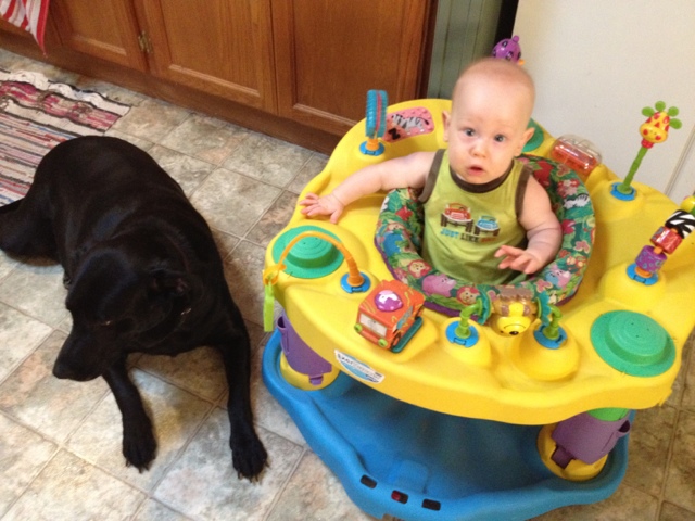 | After being gone for 5 days, Aspen is guarding Hunter while he sleeps I think to make sure we don't leave again. |
